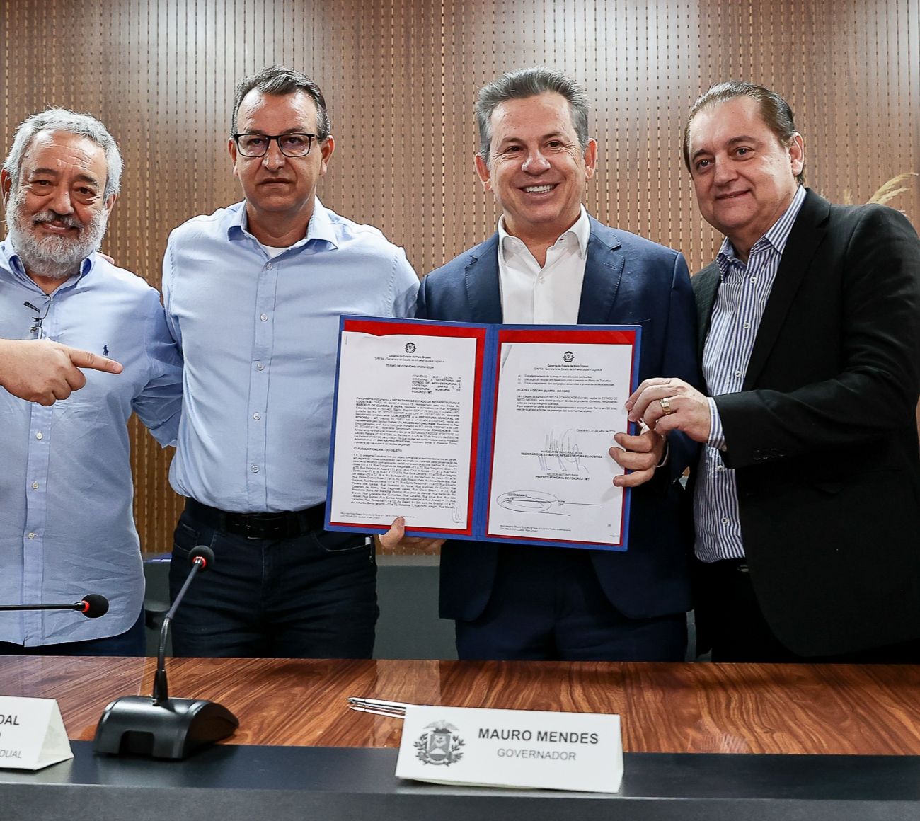 Na manhã desta terça-feira (02/07), vários deputados estaduais, prefeitos, prefeitas, o Secretário de Infraestrutura Marcelo Oliveira e o Governador Mauro Mendes participaram da assinatura de convênios que beneficiarão dez municípios com mais de 36 milhões de reais destinados à pavimentação asfáltica, incluindo o município de Poxoréu.