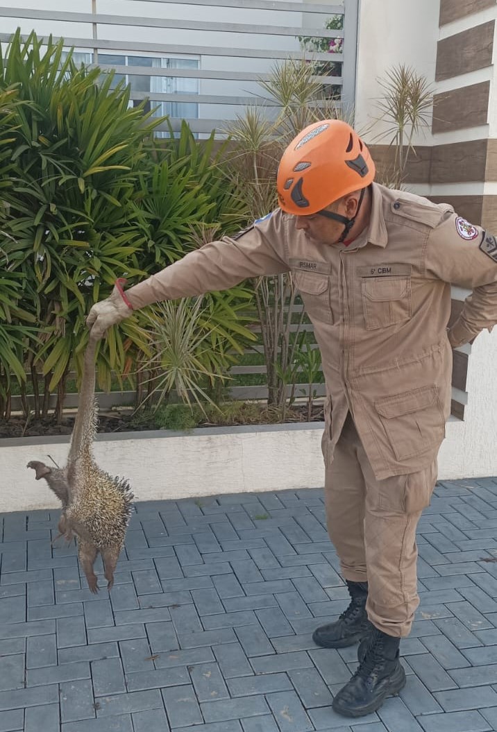 O Corpo de Bombeiros Militar de Mato Grosso (CBMMT) realizou, na manhã desta sexta-feira (12.07), o resgate de um porco-espinho que estava em cima de uma árvore em frente a uma residência, no Bairro Jardim das Américas, em Primavera do Leste (234 km de Cuiabá).