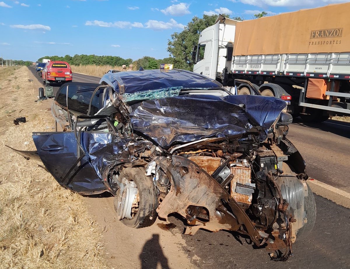 Bombeiros retiram corpo de vítima que ficou presa às ferragens em acidente na BR-158