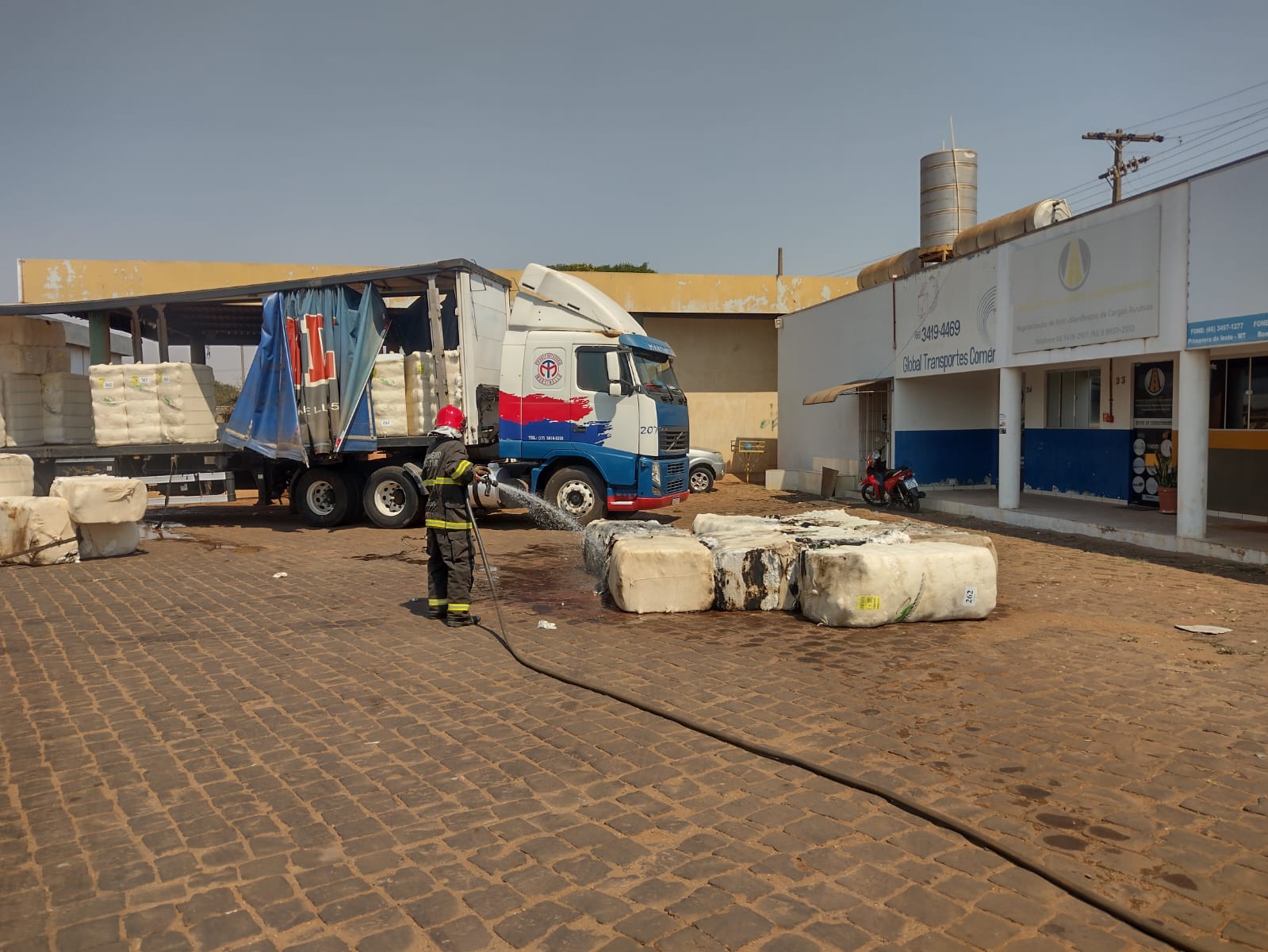 O Corpo de Bombeiros Militar de Mato Grosso (CBMMT) combateu, nesta quinta-feira (22.08), um incêndio em fardos de algodão que estavam armazenados em um caminhão estacionado no pátio de um posto de combustível no município de Campo Verde (a 132 km de Cuiabá).