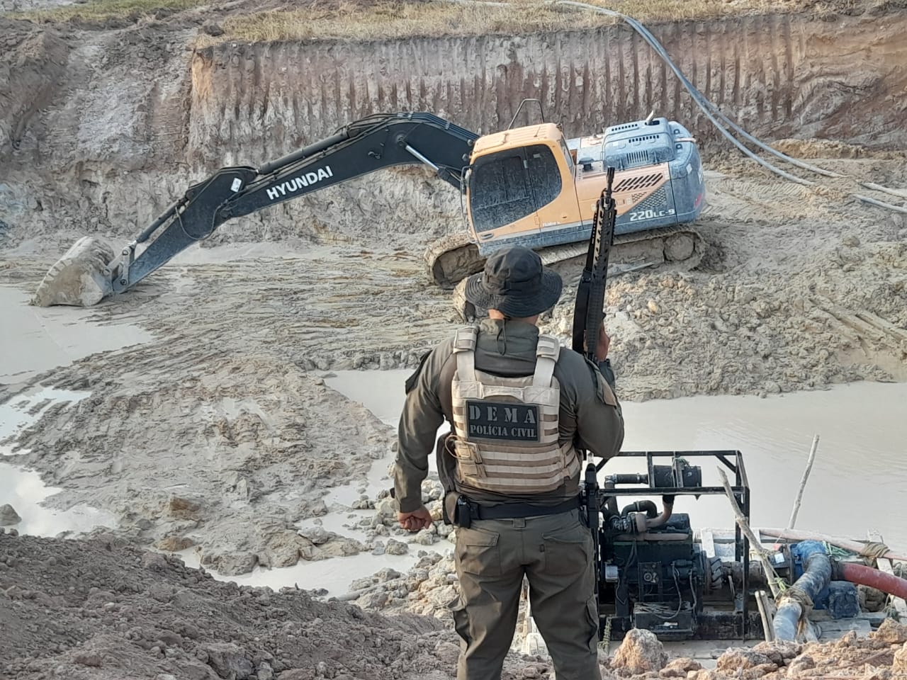 A Polícia Civil, por meio da Delegacia Especializada do Meio Ambiente (Dema) e da Gerência de Operações Especiais (GOE), atuou, entre os dias 19 a 24 agosto, na Operação Amazônia para atividade de fiscalização ambiental em áreas de garimpos e empreendimentos correlatos na região norte do Estado.