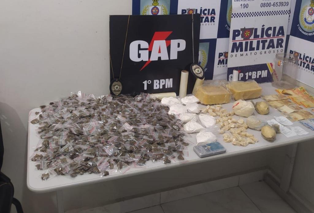 Equipes do Grupo de Apoio (GAP) da Polícia Militar do 1º Batalhão prenderam por tráfico de drogas, na noite desta quinta-feira (14.11), um homem, de 34 anos, no bairro Nova Conquista, em Cuiabá. Com o suspeito, foram apreendidos 951 porções de entorpecentes.
