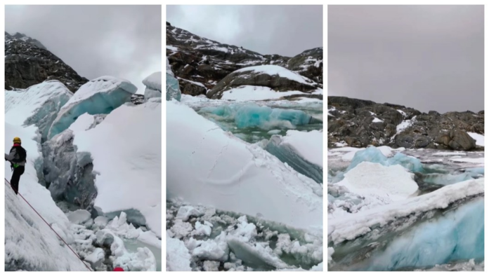 VÍDEO: Glaciar se desprende e transforma treinamento de resgate em exercício real para alpinistas no Peru