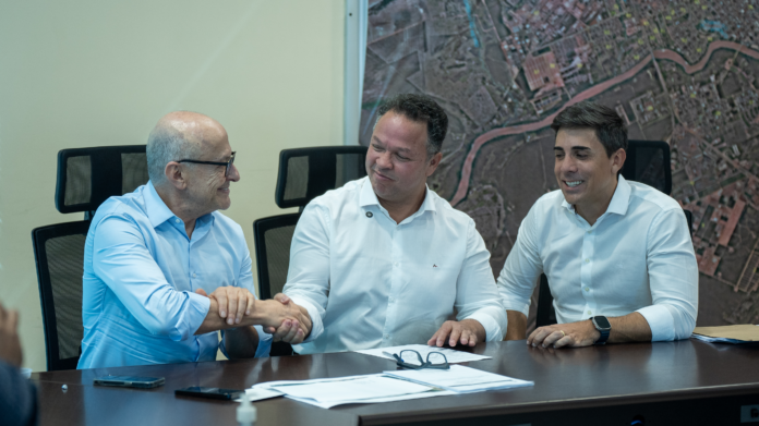 Registro do encontro entre as autoridades na sala de reuniões do gabinete do prefeito. Foto: Adeildson José