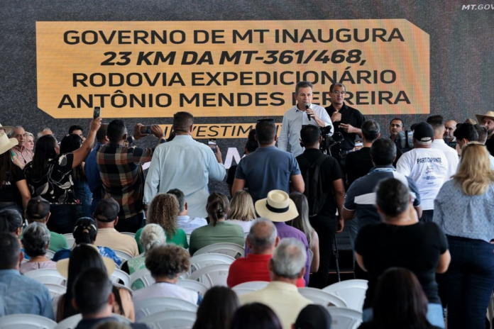 O governador Mauro Mendes se emocionou durante a cerimônia de entrega de 57 quilômetros de asfalto novo nas MTs-361 e 468, na região de Santo Antônio do Leverger, neste sábado (31.5).