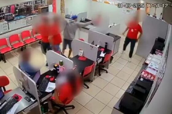 Câmeras de segurança registraram o momento em que bandidos armados invadiram e renderam funcionários de uma loja da rede Martinello, no final da tarde de quinta-feira (31), no bairro CPA 3, em Cuiabá. A mãe de um dos envolvidos no crime foi presa.