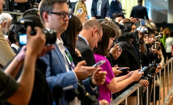 Uma visão dos jornalistas que esperam por uma conferência de imprensa na Sede da ONU