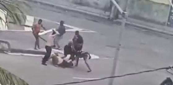Após o confronto, um homem aparece caído no chão, cercado por rivais. Ele é agredido com chutes e golpes de madeira, inclusive na cabeça, por um dos agressores que segura um pedaço pau. Não está claro se a vítima que aparece nas imagens é Mateus.