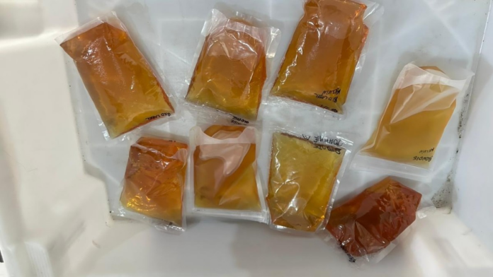 A policial penal responsável pela fiscalização levou a advogada até o banheiro, onde ela retirou e entregou voluntariamente os pacotes, que traziam anotações com marcas de bebidas.