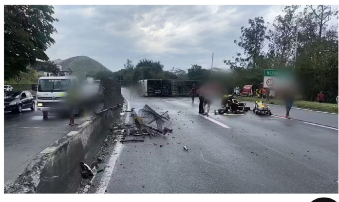 Ônibus com torcedores do Flamengo tomba na Dutra a caminho da Argentina