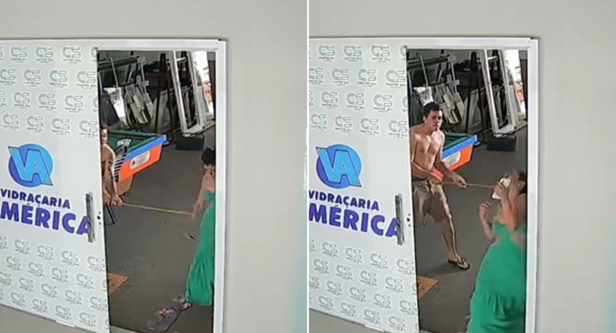 Comerciante espanca esposa com taco de sinuca dentro de vidraçaria; veja vídeo