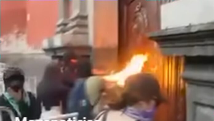 Um grupo de feministas provocou danos à Igreja de São Francisco de Assis, localizada no centro histórico da cidade de Querétaro, no México, durante as mobilizações do Dia Internacional da Mulher realizadas no último sábado (8). De acordo com relatos, parte dos participantes do ato incendiou a porta principal do templo e deixou pichações em suas paredes externas .