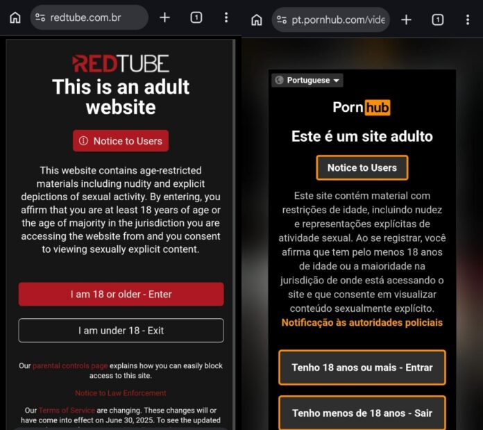A nova lei determina que plataformas com conteúdo impróprio para crianças e adolescentes, como as de conteúdo pornográfico, adotem mecanismos mais robustos de verificação de idade — e não apenas o botão “Sim, tenho mais de 18 anos”.