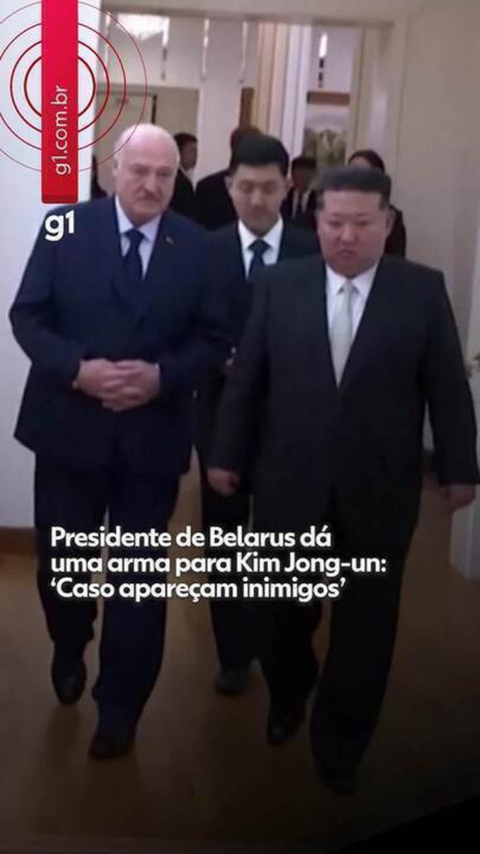 O presidente de Belarus, Alexander Lukashenko, presenteou nesta quinta-feira (26) o líder da Coreia do Norte, Kim Jong-un, com um fuzil automático durante uma cúpula em Pyongyang. O encontro reúne dois dos principais aliados da Rússia na guerra contra a Ucrânia.