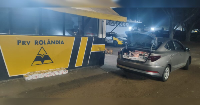 Um homem foi preso na noite desta terça-feira (7) após ser flagrado transportando três mil maços de cigarros de origem estrangeira na rodovia PR-986, no município de Rolândia.