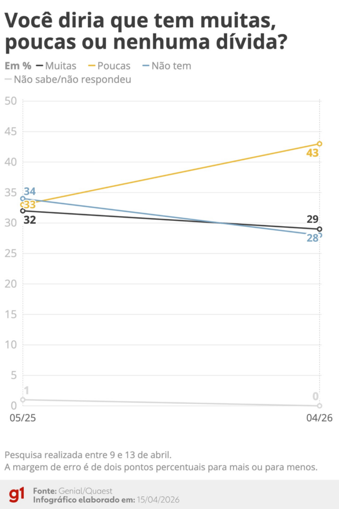 Quaest: você diria que tem muitas, poucas ou nenhuma dívida?