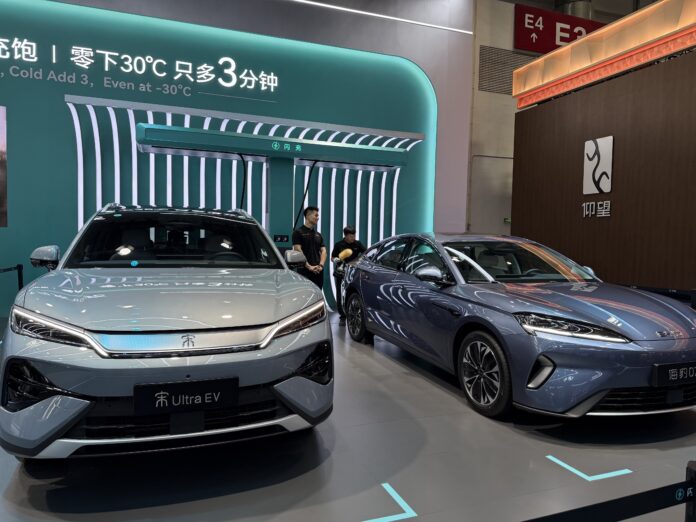Carregador ultrarrápido da BYD no Salão do Automóvel de Pequim
