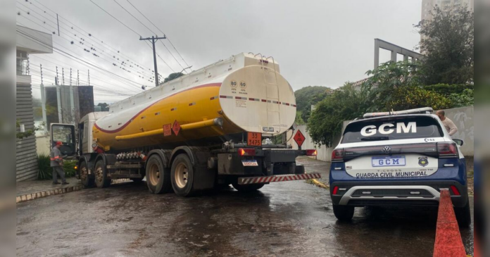Um caminhão ficou enroscado no início da tarde desta terça-feira (28) na Rua Professor Isidoro Luís Cerávolo, no bairro 28 de Janeiro, em Apucarana. O motorista relatou que foi direcionado para a via pelo equipamento de GPS e acabou não conseguindo realizar uma curva. O incidente travou o trecho e exigiu o acionamento da Guarda Civil Municipal (GCM), que prestou apoio no controle do trânsito local.