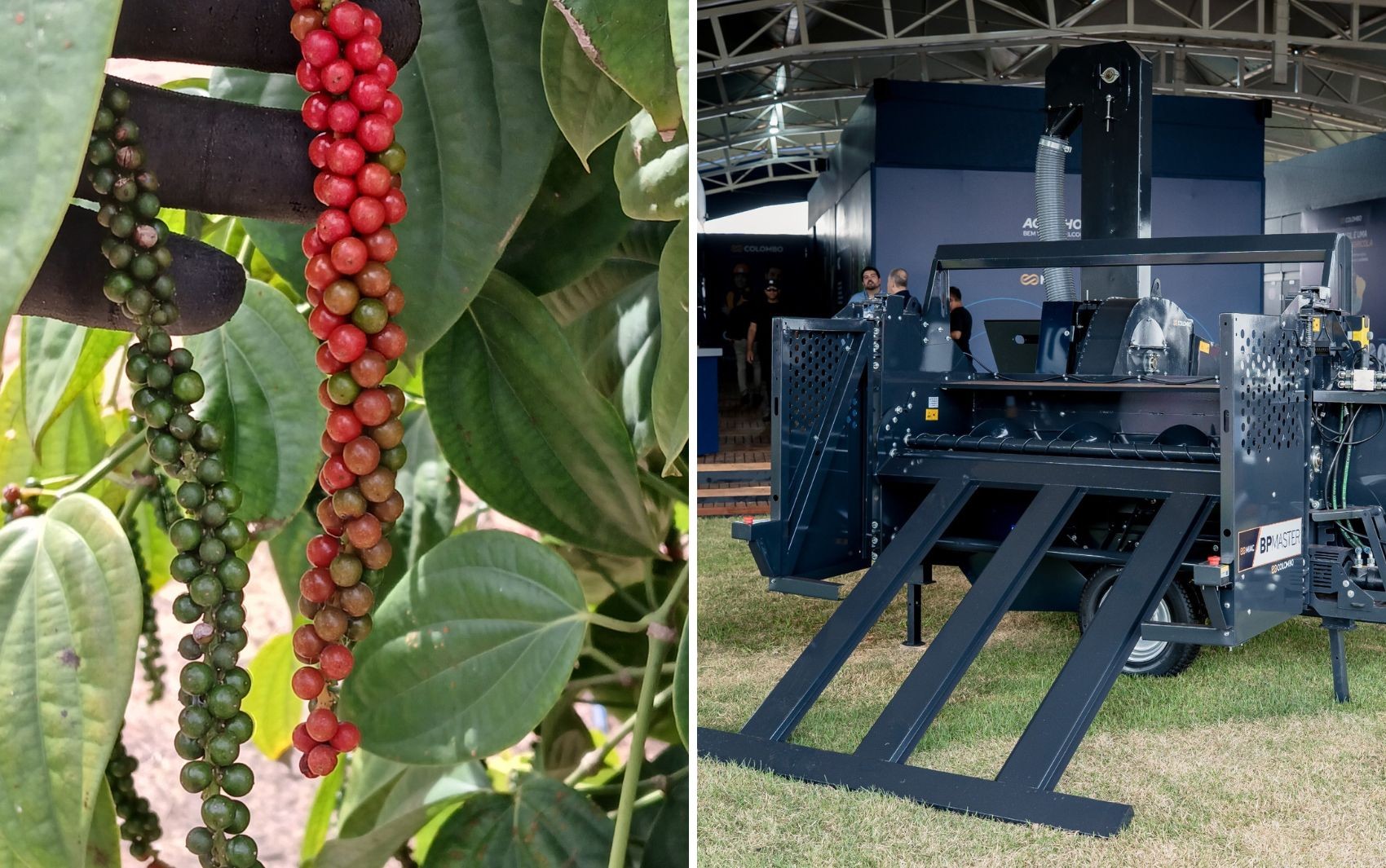 Para enfrentar esse gargalo, a empresa lançou a BP Master, uma recolhedora trilhadora de pimenta-do-reino considerada inédita no mundo. O equipamento é acoplado ao trator e realiza, de forma mecanizada, etapas que antes eram feitas manualmente